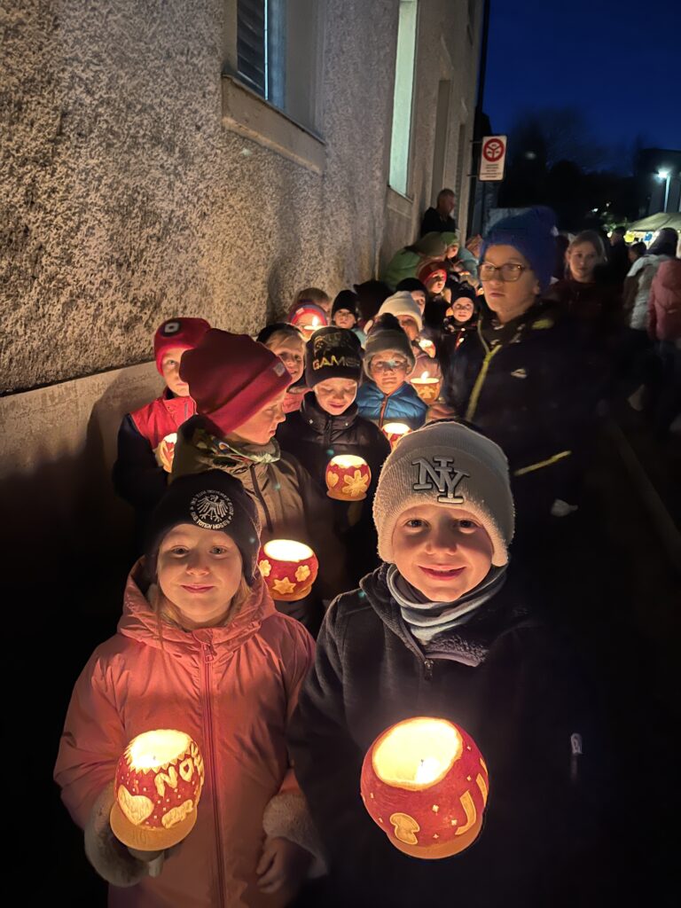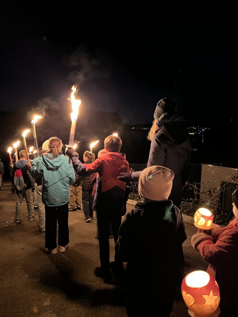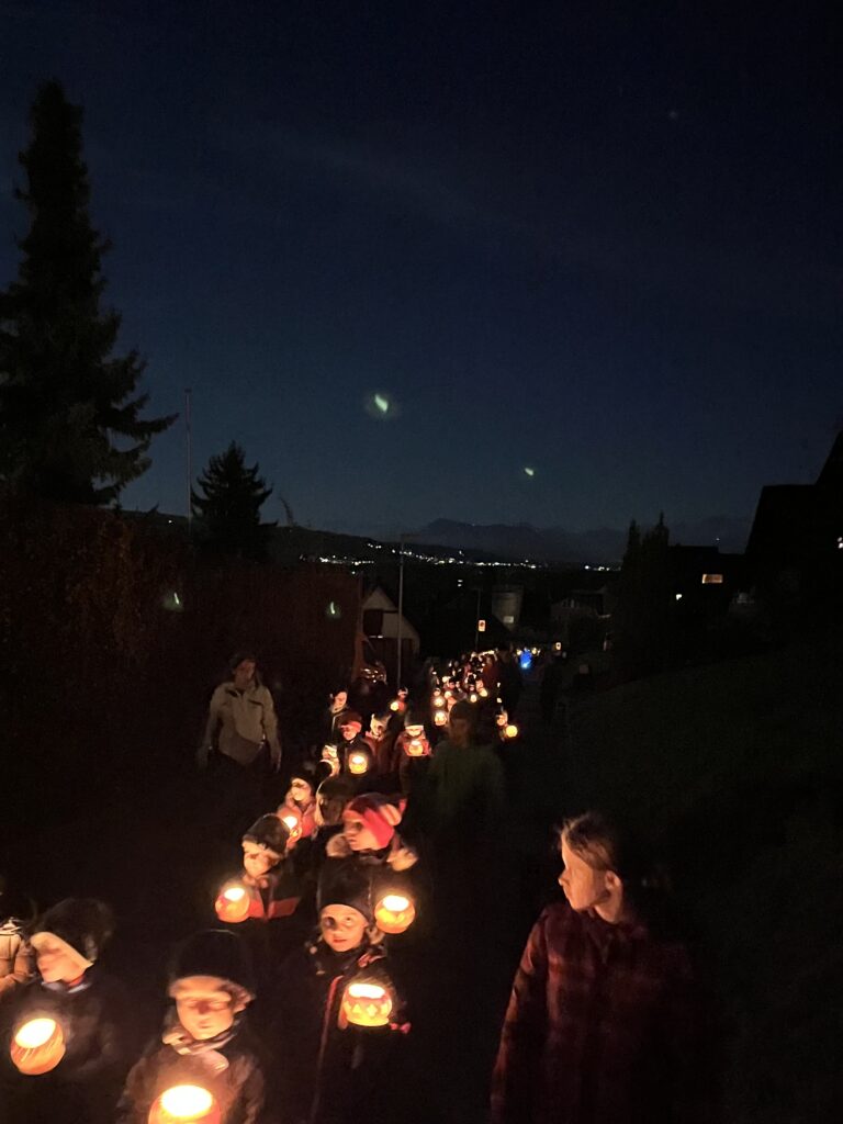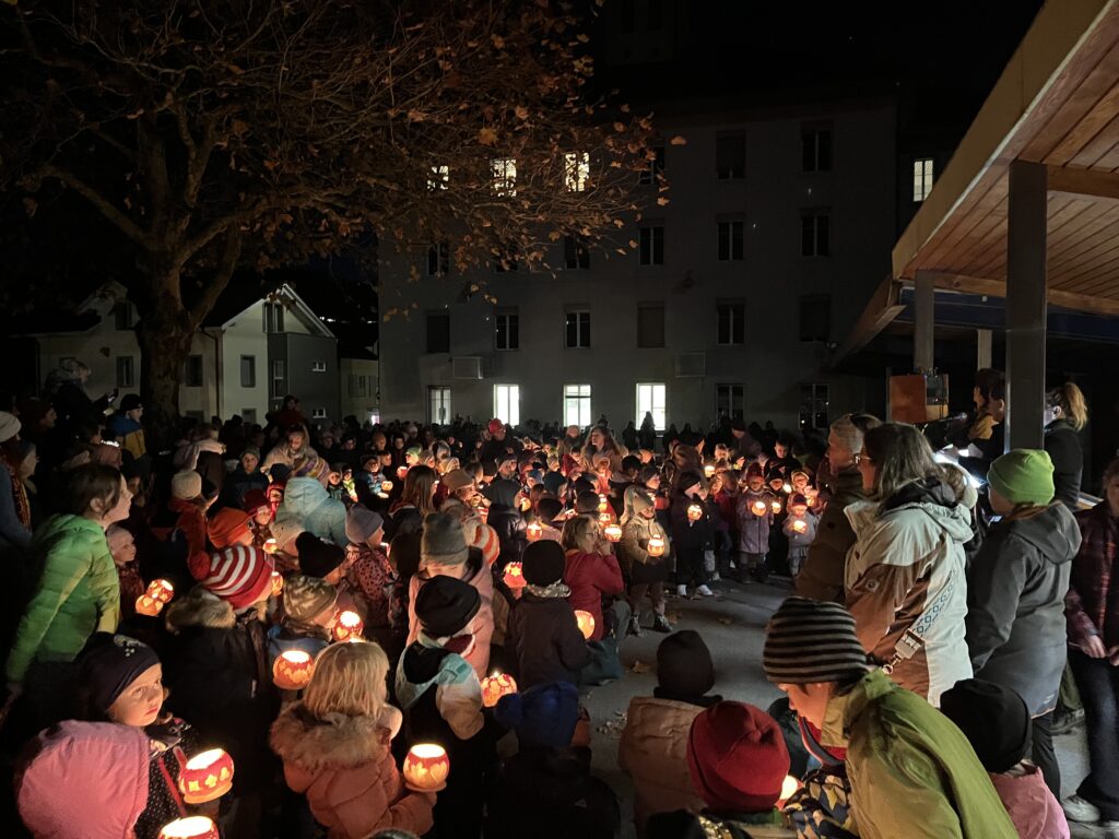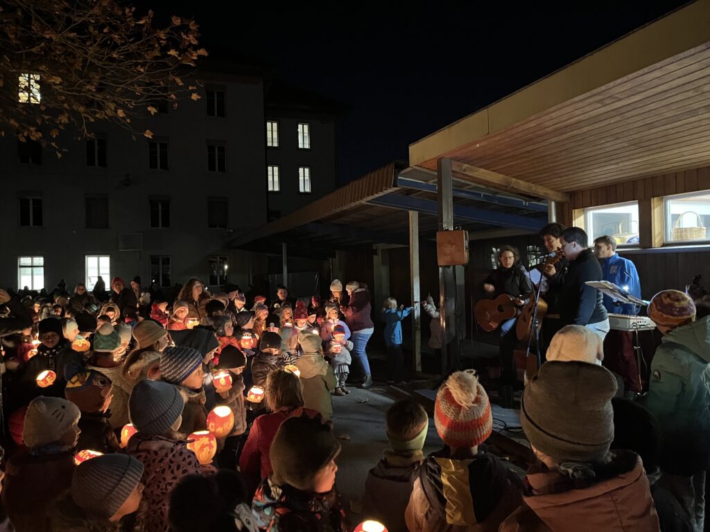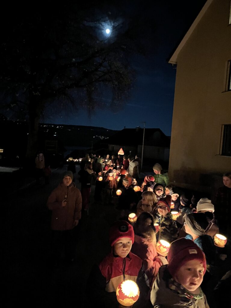 Punkt 18 Uhr setzte sich der Umzug, angeführt von den Fackelträgern, in Bewegung. An der neuen Route versammelten sich die Zuschauer und bewunderten in der Dunkelheit die von Kerzen erhellten Räbeliechtli. Zurück auf dem Schulhausplatz erwartete uns ein stimmungsvoller Ausklang mit einem kleinen Konzert, begleitet von Lehrpersonen mit verschiedenen Instrumenten. Herzlichen Dank an den Elternrat für den liebevoll verzierten Verpflegungsstand für Gross und Klein und an alle freiwilligen Helfer, die dazu etwas beigetragen haben.